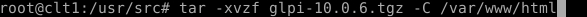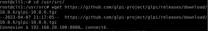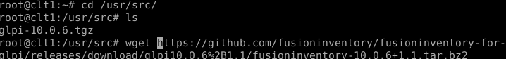 On va se mettre dans le dossier /usr/src et on va télécharger les paquets GLPI et le copier dans le dossier /var/www/