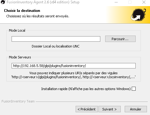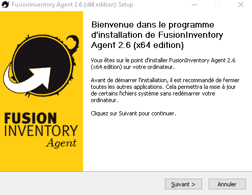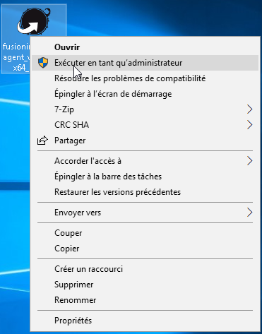 Sur une machine cliente Windows, nous allons télécharger l'agent fusioninventory puis nous allons l'exécuter en tant qu'administrateur.