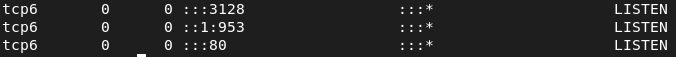 Nous allons utiliser la commande netstat –atn pour voir les ports ouverts. Squid écoute sur le port 3128 par default et constate bien que le port 3128 est à l'écoute.