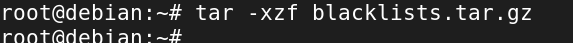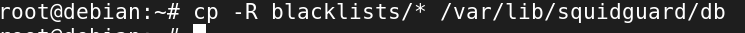 Nous allons copier le fichier blacklist dans le répertoire de squidguard en utilisant la commande cp -R qui va nous permettre de copier l'arborescence complète avec l'ensemble des sous-dossiers et fichiers.