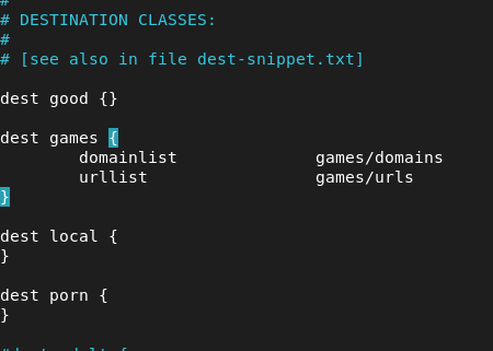 Nous allons configurer le fichier conf /etc/squidguard/squidGuard.conf