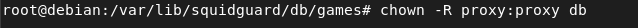 Le contenu de /var/lib/squidguard/db/ doit être accessible en lecture et en écriture par l'utilisateur sous l'identité duquel squid tourne. Dans notre cas, c'est l'utilisateur « proxy » :