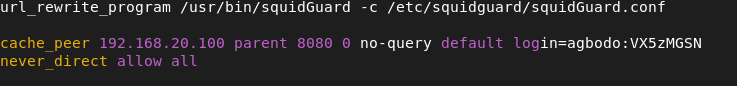 Nous allons faire pointer squid vers squidGuard en configurant le fichier conf de squid et on le copie dans /etc/squid/squidGuard
